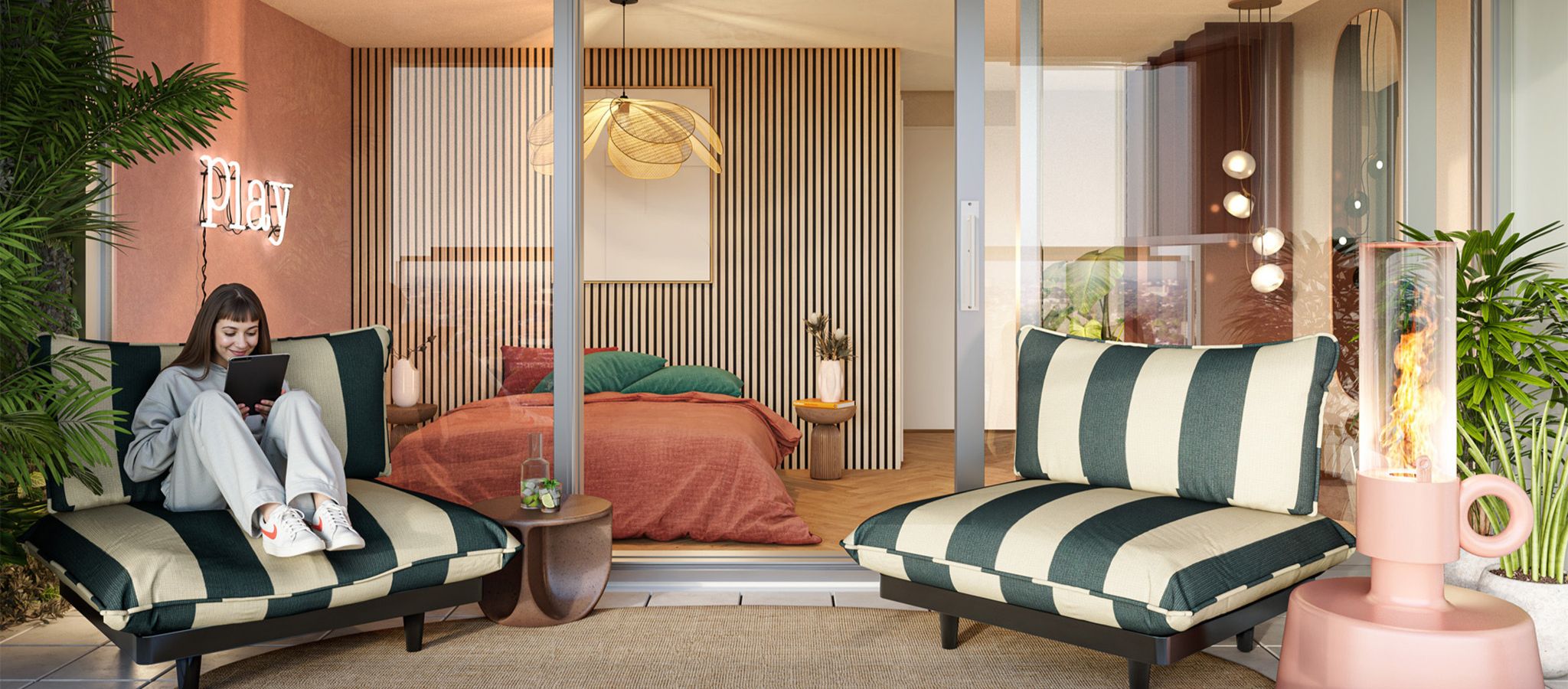 Stel je voor: je loopt door je appartement richting het raam en wordt begroet door het panoramische uitzicht over de Waal, het centrum van Nijmegen of het Waalkwartier. Koffie in je hand, sloffen aan en lekker wakker worden met de zonsopgang op je balkon. Of aan het eind van de dag met een borrel genieten van de zonsondergang op je grote terras. In je superior appartement in Jade heb je zo’n 200 m² leefruimte, met 3 slaapkamers en 2 badkamers. Genoeg ruimte en plekjes om te genieten in alle hoeken van je woning.