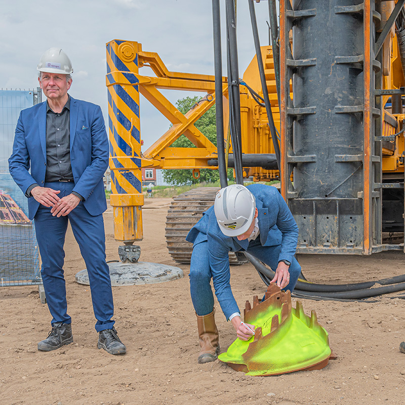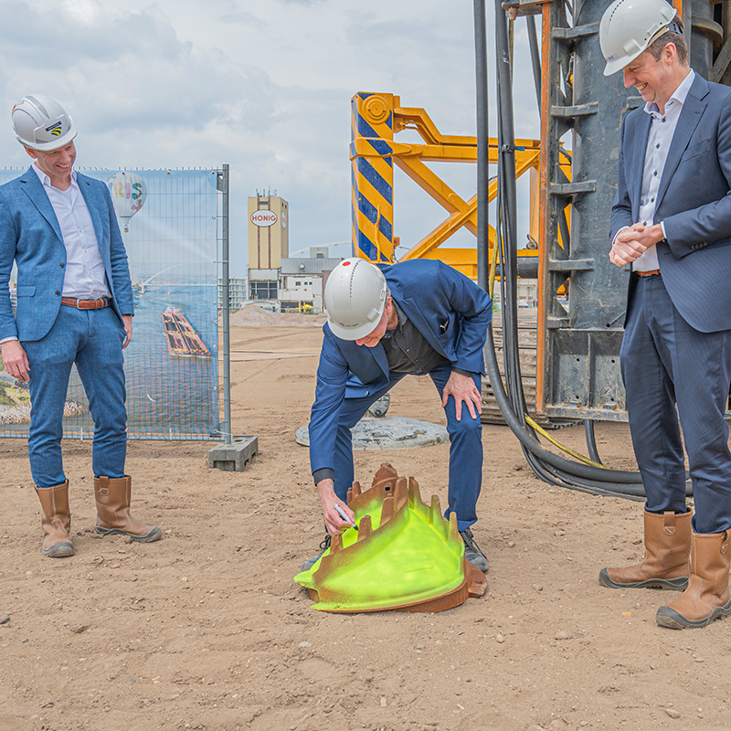 Donderdag 6 juni is de start bouw gevierd van IRIS- Waalkwartier in Waalfront-Nijmegen. Het project betreft de bouw van een parkeergarage met daarbovenop 495 woningen waarvan het merendeel appartementen. De officiële handeling, “de eerste paal”, werd verricht door wethouder Noël Vergunst, Bart Pigge, (Dura Vermeer Bouw Hengelo) en Joost Mulder (BPD | Bouwfonds Gebiedsontwikkeling).
