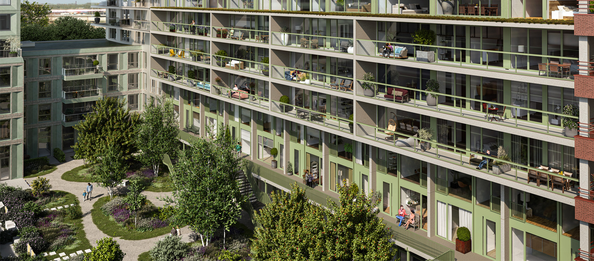 Wonen in Iris betekent genieten van de stad, de groene binnentuinen en het uitzicht op de Waal, de haven. Hier is ruimte om je talenten te ontwikkelen, volop te genieten van het leven of juist tot rust te komen. Hier gebeurt het. Hier is plek voor jou. Binnen én buiten. Op je balkon, in jouw privé tuin of binnentuin. Misschien vier jij je verjaardag wel hartje zomer in de groene binnentuin?